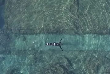 Sunken Cities takes usinto the submerged Roman city of Baiae – once a place of abundance, now lying beneath the Mediterranean after centuries of volcanic activity. On the seabed, the 2,000-year-old remains of a hedonistic retreat appear: marble corridors, stone halls, overgrown mosaics, and strange scaffolding structures. Like a future archaeologist, Škarnulytė traverses a sunken landscape where past, present, and future flow into one another. Immersion becomes a form of transformation: culture settles into sediment, memory turns into ecosystems, and human traces merge with planetary cycles. Sunken Cities is a visual meditation on the persistence of change—civilizations may disappear, yet their traces will continue to resonate through water, stone, and time.